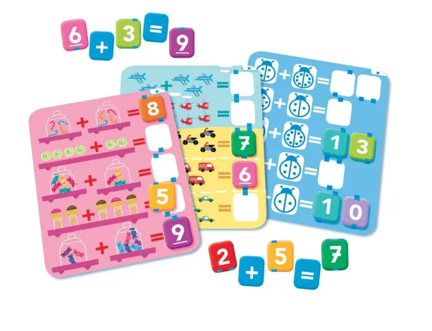 Apprenez le calcul grâce à cette sélection de 6 jeux évolutifs. Comptez les éléments d’une carte, puis cherchez le chiffre manquant de l’opération, et ensuite le résultat de l’addition. Existe aussi pour plusieurs joueurs grâce au jeu du loto-mémo.