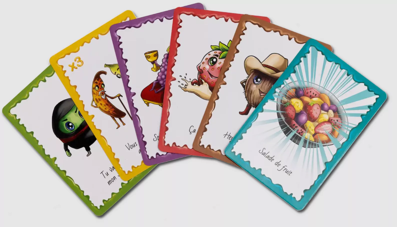50 cartes Fruits, 15 cartes Défis, 40 jetons, 1 règle du jeu